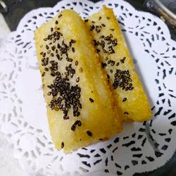 2. Place it in the refrigerator for about an hour and then cut into pieces.Sprinkle black sesame seeds for decoration, then store in the freezer, take out and process as needed