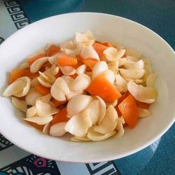 2. Blanch the carrots for about 2 minutes, add the lily, and blanch for 30 seconds.