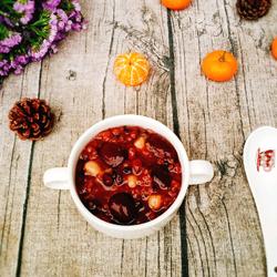 9.A delicious red bean, peanut and black rice porridge is ready.