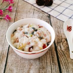 10.Add preserved egg cubes, stir evenly, and continue to cook until the rice is thick.