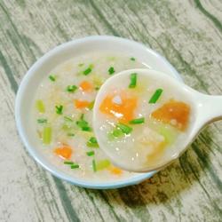 20.A dish of mushroom, seasonal vegetable and chicken porridge is ready~