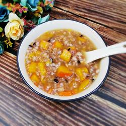 5.Pour the pumpkin and Shimi porridge into the rice cooker.