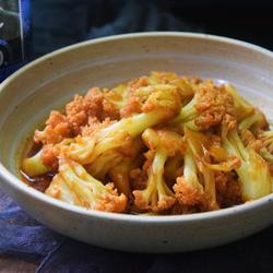 2.Add a small spoonful of salt to the cauliflower and soak for fifteen minutes3.Use scissors to cut into small pieces