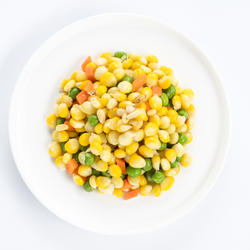 1.In the pot Add an appropriate amount of water, bring to a boil over high heat, add sweet peas, carrots, and corn and blanch for 2 minutes