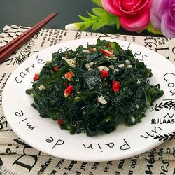 4. Rinse the soaked sea fungus with clean water, squeeze out the water, and put it in a bowl , add crushed red and green chili peppers and minced garlic, add all seasonings and stir.