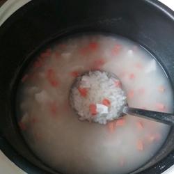 7. When the time comes, open the lid and enjoy the salty and smooth duck egg white ham.The white rice porridge is ready.Come and try it.