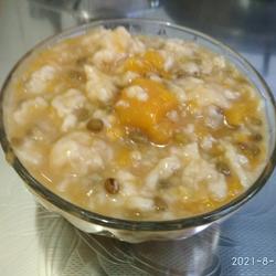 13.Put it into a bowl.The nutritious, healthy, heat-clearing and detoxifying pumpkin and mung bean porridge is ready and delicious to eat.