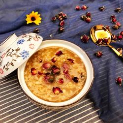 6. Boil until the ingredients are cooked and the porridge is thick, then turn off the heat.After turning off the heat, add appropriate amount of brown sugar, mix well and serve.