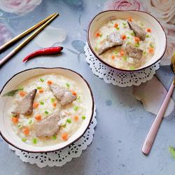 10. Take a picture of the finished product, and a delicious and nutritious pork liver and lean meat porridge is completed.