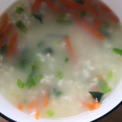 3.Boil the rice porridge for 30 minutes, add spinach, carrots, and a spoonful of salt, and take it out after two minutes