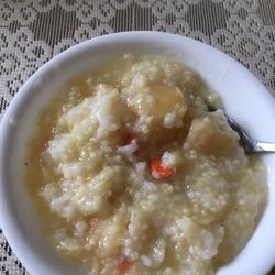 3.Put water in the rice cooker, then add millet, then add diced apples