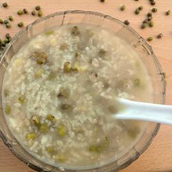 2.Wash the mung beans and rice and soak them in water for 5 hours
