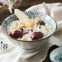2. Combine yam, gorgon seeds, white lentils, lotus seeds, and barley kernels Soak these difficult-to-cook raw materials in water for one and a half hours; just wash other ingredients.