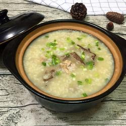 7. Cook When the rice is rotten and the rice soup is thick, add the pork and cook