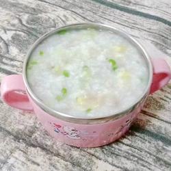 8.Pour Chinese cabbage stems, minced pork tenderloin, and diced peas into the porridge pot and cook for 10 minutes