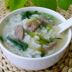 9.When the rice is cooked and thick, add the pork liver and cook slowly for a few minutes