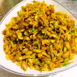 5. Shake the steamed sophora flowers and add salt, onion, garlic, chili powder and thirteen spices in sequence