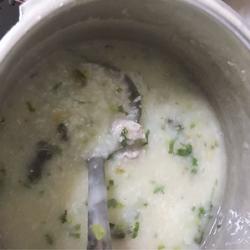 3.After turning on the heat, cook until the porridge is mushy, then add pork, preserved eggs, some salt and chicken essence, and finally add coriander.