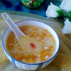 3.Wash the millet, put it into the rice cooker, then add the pumpkin, and add an appropriate amount of water