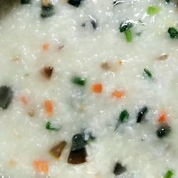 7. Add diced carrots, diced meat, ginger slices, and preserved eggs to the cooked rice porridge and cook for 15 minutes