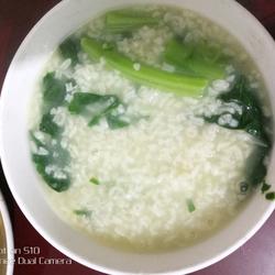 3. Put the rice into the pot, add about 6 times the water, bring to a boil over high heat, turn to medium heat and cook for 20 minutes, add the winter amaranth , cook for another 20 minutes and remove from the pot