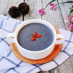 5. When the time is up, pour the beaten black sesame paste into a bowl and use Garnish with wolfberry.