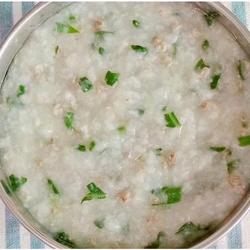 8. Boil the porridge until soft, add in minced pork liver, stir evenly and cook for two minutes