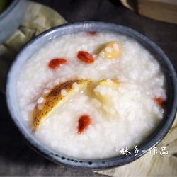 4.Wash the soaked rice and put it into the pot together with the pears
