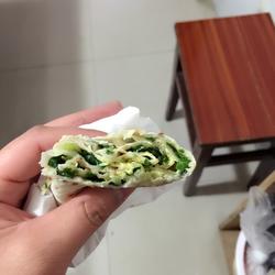 Cut leeks It is best not to add salt and mix it first, otherwise water will come out, which will make it difficult to bake pancakes, so sprinkle it on the pancakes, then sprinkle a little of the beaten egg liquid, sprinkle some sesame oil, dry fry, do not add oil, and use high heat.It can't be too big.Once it's baked, be sure to take it out and simmer it for a while until it becomes soft and very fragrant