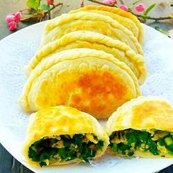 13.Put a little oil in the pot , put the leek box and fry slowly over medium heat,
