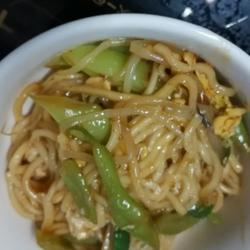 6.Pour in bean sprouts and stir noodle.Cook over low heat for 2 to 4 minutes