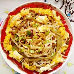 1. Cut beans, green and red peppers into sections, shred the eggs, fry them and set aside.I forgot to take a photo