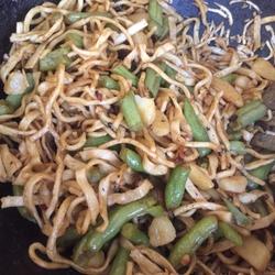 3.Add hot pepper, potato sticks, beans and stir-fry to taste