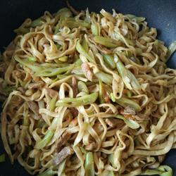 2. Heat the oil in a pan with cold oil.After the oil is slightly hot, add the shredded pork and stir-fry until it changes color.Add cooking wine.Light soy sauce enhances the flavor and keeps it fresh.Add onion, ginger, garlic and dried chili and stir-fry until it changes color.To taste, add the beans and stir-fry several times, add salt and peppercorns, add an appropriate amount of dark soy sauce and stir-fry, add hot water (just cover two-thirds of the beans).