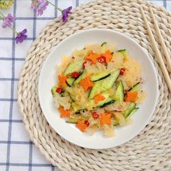 5. Combine the white fungus, carrots and peppers Put it into the bowl with cucumber