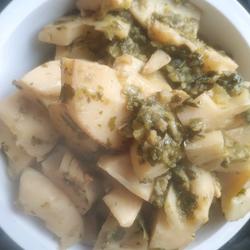 Bamboo shoots need to be stir-fried thoroughly so that there is no astringency.Cut them into small pieces and stir-fry them to remove the oxalic acid