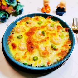 Recipe for baked rice with shrimp and cheese