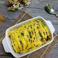 You can add fried rice ingredients as you like, and the oven temperature will depend on your respective oven.