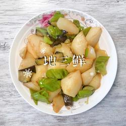 1.Pour oil into the pot, add eggplant pieces, fry until cooked and take them out2. Add potatoes and fry until brown, then add green peppers and fry the wrinkled skin, remove and control oil