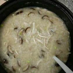 4. After the chicken breast is cooked, take it out and rinse it with cold water.Don’t throw away the soup used to cook the chicken breast.Pour the washed rice and shiitake mushrooms into the chicken soup and cook