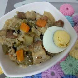 Claypot rice with seasonal vegetables and pork belly
