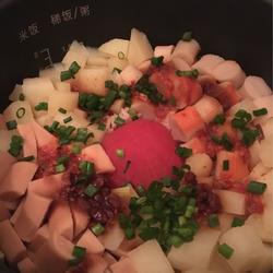 5. After the rice pot is adjusted to the heat preservation effect, Open the lid and sprinkle with chopped green onion and soy sauce...