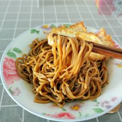 3.Put the noodles into a plate, mix evenly, and cut an egg.