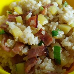 Rice, potatoes, bacon ( ) | Oil, green onion, salt, chicken essence, ( ) |