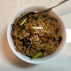 3.Add water, cook for 20 minutes, pour in the remaining rice, and simmer for two Minutes, add onions and garlic, stir evenly, and remove from the pan.