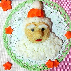 9. The remaining white rice is spread evenly under the face, and Santa Claus’s beard is Made.