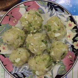 3.Stir the cooked rice with chopped vegetables, seasonings, and chopped cooked eggs, shape into small balls with your hands, and serve on a plate p>