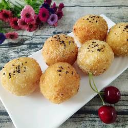 7. Heat the pan and pour oil.When the oil is 50% hot, add the rice balls and fry until the outer skin is golden and crispy.Remove and control the oil..