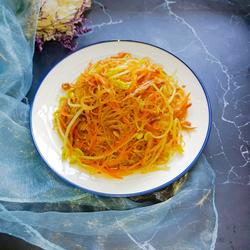 3.Remove the roots of the soybean sprouts and clean them, and cut the carrots into shreds