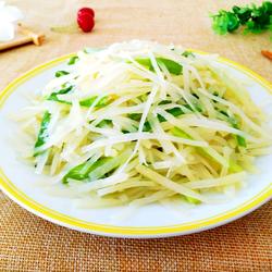 Put the cut potato shreds in water, soak them to remove the starch, rinse them twice and fish them out After cooking, control the moisture content while frying so that it will not stick together easily.Then add the leeks and stir-fry them for a few times before they are cooked.